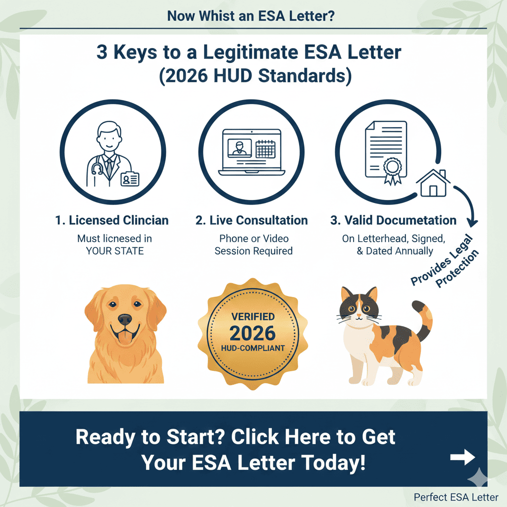 Live Consultation: You meet with a licensed clinician via phone or video chat. This is a critical step—HUD warns that “instant” letters without a consultation are often fraudulent.